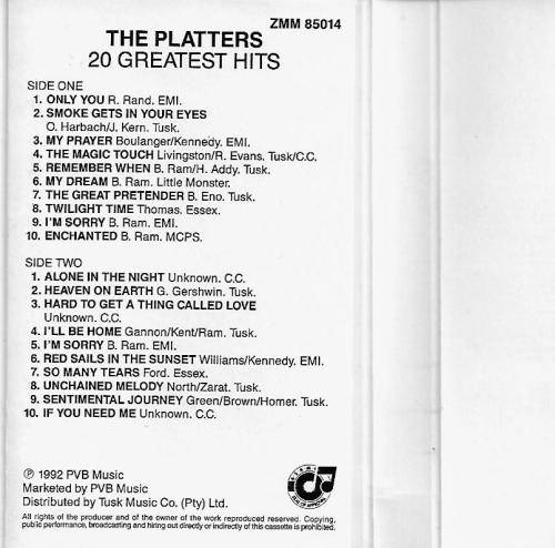 The Platters 20 Greatest Hits Cassette Tape