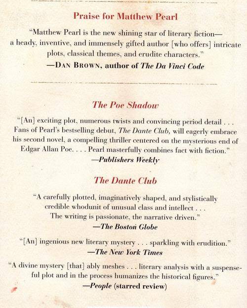 The Poe Shadow by MATTHEW PEARL - Random House - First Edition 2006 - In Mint Order*
