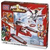 The Power Rangers Samurai Red Ranger Showdown is a 175-piece set with four possible model builds, including the Red Ranger's Red Samurai Hydrofoil and Deker's Nighlok fighter. The models can launch missiles or the ranger's secret power discs. The set comes with a Deker figure with armor, mask, and a Uramasa sword and a Red Ranger figure with battle-damaged armor, a helmet, a belt, and a Fire Smasher. Vinyl stickers are also included.