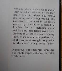 "William and Harriet Rabone set sail for the Cape (from England) and are shipwrecked 4 miles from Port Elizabeth and are rescued by a passing East Indiaman and taken to St Helena. William's diary of the voyage and their experiences before reaching Algoa Bay makes for interesting and exciting reading. Harriet's letters to a friend in London give a vivid description of life in a small country town.