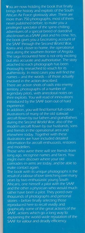 The SAAF At War 1940-1984 By JS Bouwer & MN Louw, published in 1989, 220 pages, large hardcover with dustjacket, slight scuffing etc otherwise all good.