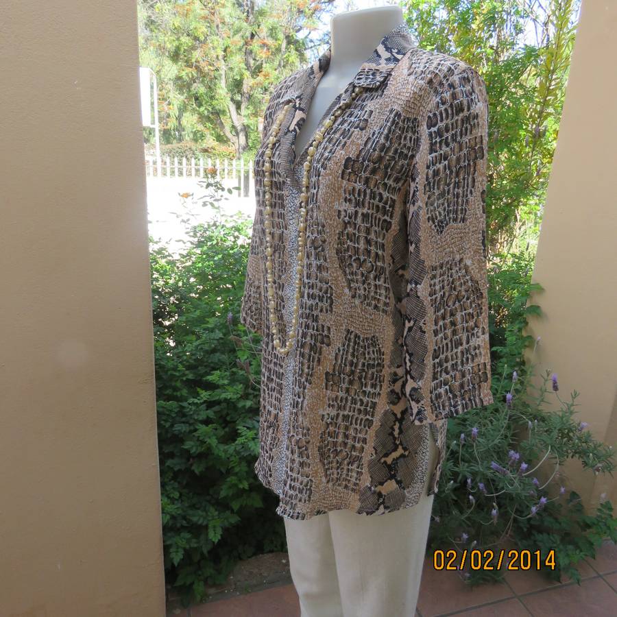Elegant animal print polyester top size 36. Beige-peach and black. Bracelet length sleeves. As new