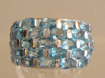 This stylish , dome sterling silver ring is set with 22 pieces of 4.00 x 3.00 mm oval cut blue topaz , approx . 4.20 ct , same as the photo. New ring.