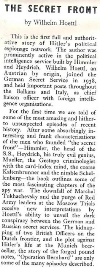 The Secret Front - The Story Of Nazi Political Espionage - By Wilhelm Hoettl