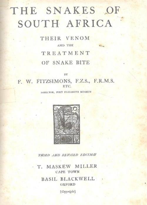 The Snakes of South Africa their Venom and the Treatment of Snake Bite by F W Fitzsimons