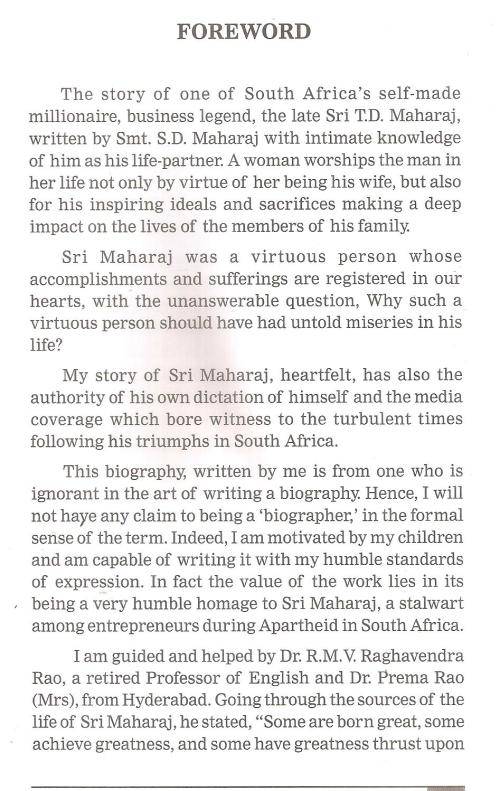 The Rise and Fall of a Business Legend during Apartheid Regime in South Africa Sri T. D. Maharaj By:Smt. Shamilla Maharaj ***Signed Copy***