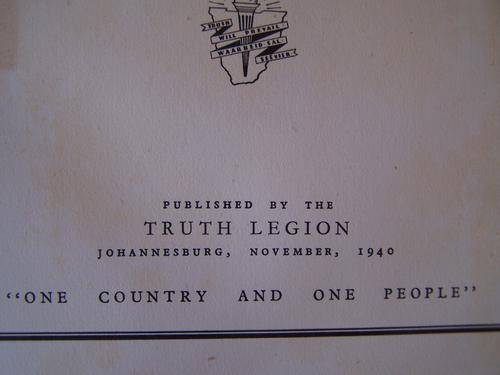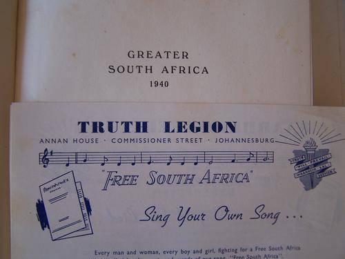 Wow, what a find!!! Rara and collectable Africana Book. Greater South Africa, Plan for a Better World. The Speeches of GENERAL The Right HONOURABLE J.C SMUTS, P.C.,C.H.,K.C.,D.T.D. Published by the TRUTH LEGION Johannesburg, November 1940. "One Country and One Peolple" 191pages.