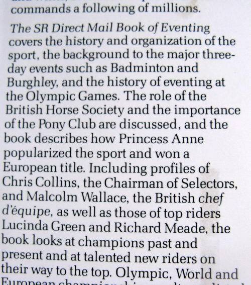 THE SR DIRECT MAIL BOOK OF EVENTING (1984 OLYMPIC GAMES THREE DAY EVENT) HARDCOVER BY A.SMITH & B