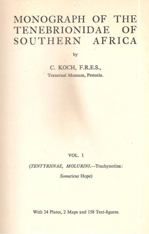 The Tenebrionidae of Southern Africa Vol I By:C. Koch  F.R.E.S. ***Signed Copy***