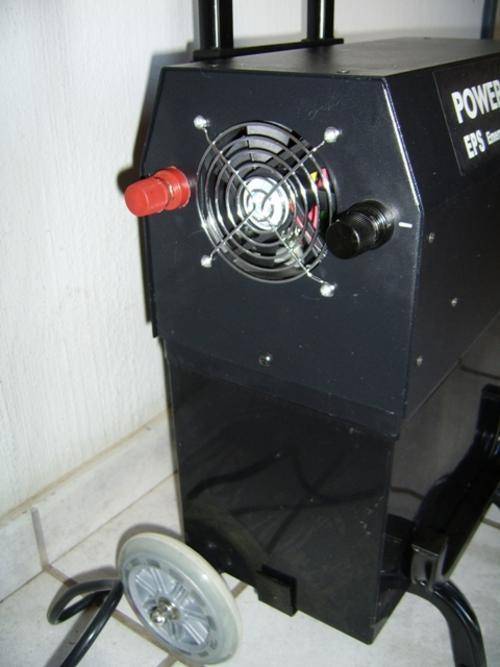 This EPS is an inverter/charger/power supply all-in-one unit. It consists of an inverter charger and rechargeable battery and is assembled on a trolley with adjustable waist-high handle. You can use it to power most of your electrical appliances at home in normal time or in case of a blackout. In addition, you can use it as a charger to re-charge other 12V sealed lead acid batteries.