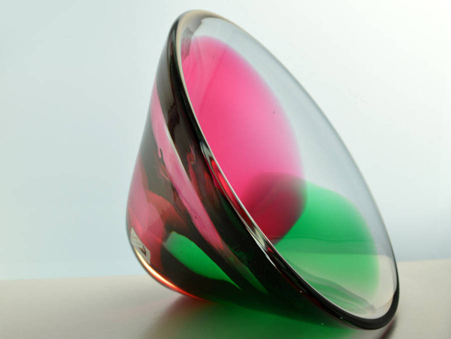 Exported and sold around the world as art glass for the home, these modern and vibrantly coloured designs became enormously successful.