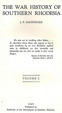 The War History Of Southern Rhodesia Volume 1 By. J.F. Macdonald