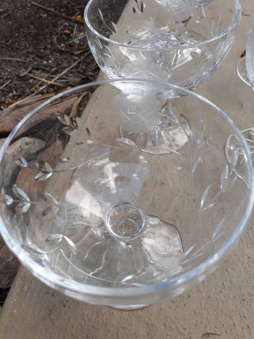 Gorgeous champagne?? or use as dessert bowls. Crystal rose cut