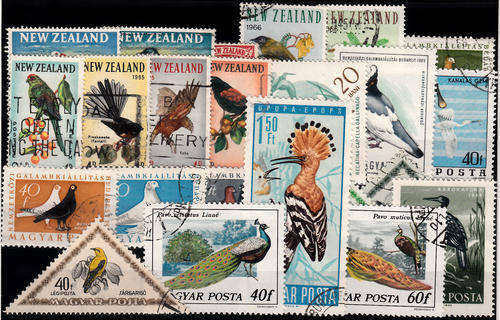 THEMATIC BIRDS MAINLY USED 21 STAMPS MIXED LOT INCL NEW ZEALAND LOT AND TRIANGLES