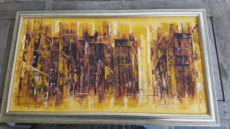 Painting is 74 x 40 cm , more in frame which is 85 x 34 cm.