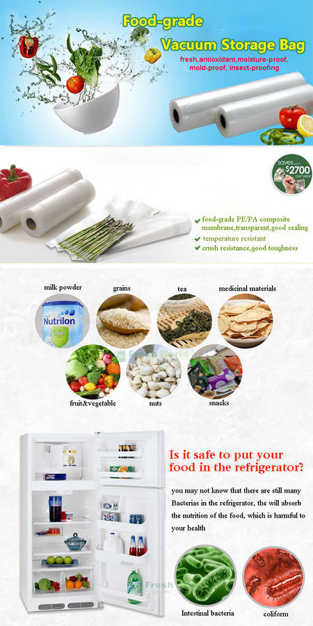Description: Thickened 20x500 Netted Food Vacuum Bag Food Vegetabel Fruit Meat Fresh Vacuum Sealing Bag Thicken netted vacuum bag, fresh, anti-bacteria, moisture-poof, mold-proof, and so on Convex dots design, can exhaust air completely,truly to create a vacuum situation for storaging food Wide range of application, put it in the oven, refrigerator, boiling, frozening, and so on Specification: Materia : Composite Material Size : 20x500cm/7.9x196.9Inch Pacakge Includes: 1 x Roll of 20x500cm Netted Vacuum Bag