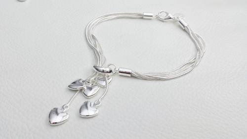 This 925 sterling silver plated 5 string bracelet with hearts looks stunning on - *Anti-allergic*