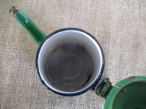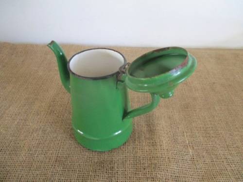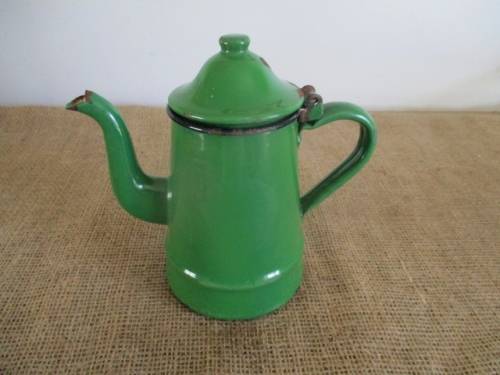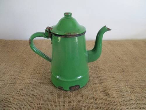 My-O-My.......This is donkey years old and so characterful !!!!! An antique/vintage enamel coffee pot in a rare green colour !!! In good clean vintage condition.....marks due to use and age.....however this adds further character to this beautiful old coffee pot !!!
