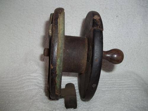 THIS IS VERY OLD - A VINTAGE FISHING REEL MADE FROM WOOD AND BRASS