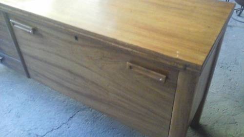 THIS VINTAGE KIAAT SIDEBOARD HAS ONE SIDE CUPBOARD 4 DRAWERS&A DROP DOOR DOUBLE CABINET ON THE RIGHT