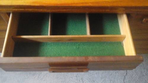 THE TOP DRAWERS IS A CUTLERY DRAWER. CAN BE USED AS A LIQUOR CABINET