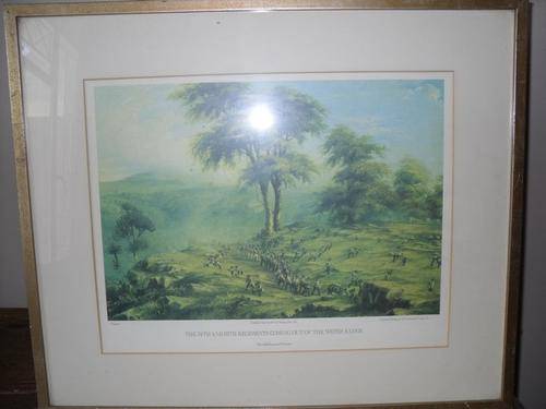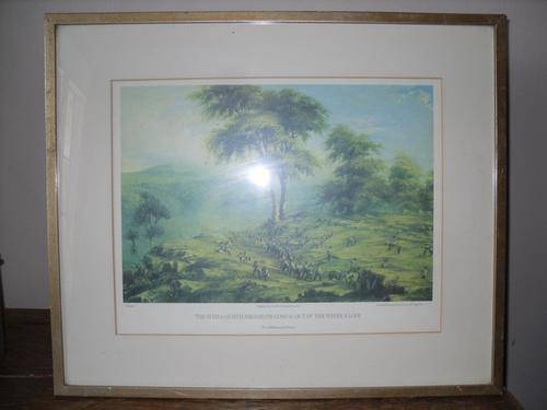 Thomas Baines - The 74th and 12th Regiments coming out of the Water Kloof, framed print, wear on the frame print in good condition, Publ. July 31, 1976 by Heritage Fine Art, limited printing of 500 numbered copies.