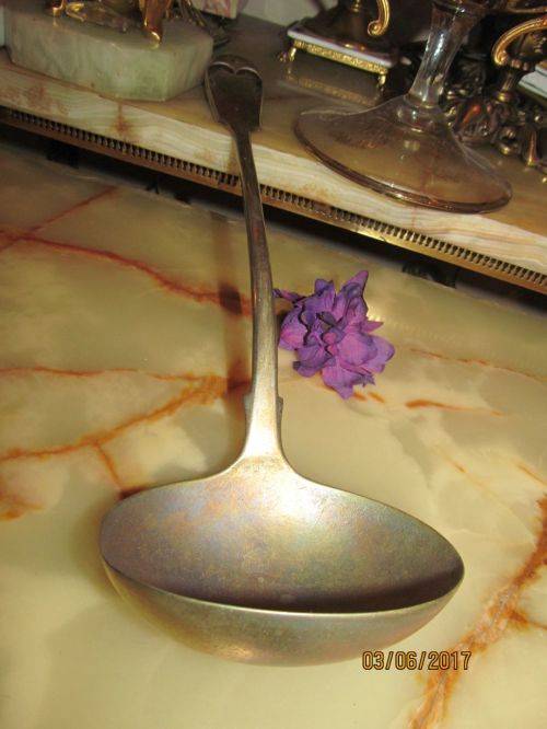 http://www.ebay.co.uk/itm/ANTIQUE-LARGE-HEAVY-OLD-ENGLISH-PATTERN-SILVER-PLATED-SOUP-LADLE-W-E-Co/222528147168