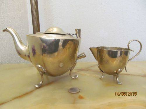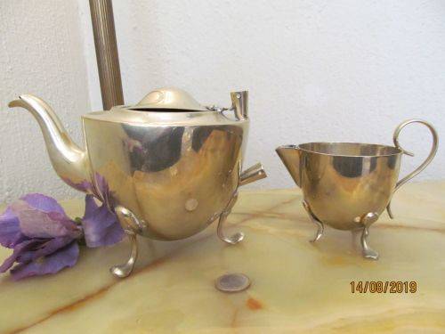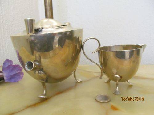 CONDITION : THE TEAPOT REQUIRES A HANDLE AND LID FINIAL (BOTH FITTINGS ARE COMPLETE AND NOT DAMAGED IN ANY WAY....IT APPEARS AS THOUGH THE HANDLE AND FINIAL WERE SIMPLY REMOVED) THE TEAPOT ALSO HAS A SMALL DENT ON ITS SHOULDER. ASIDE FROM THIS THE TEAPOT HAS NO OTHER DENTS OR DAMAGES. THE CREAMER IS IN PERFECT CONDITION HAVING NO DENTS, RUST, PATINA OR DAMAGES ETC