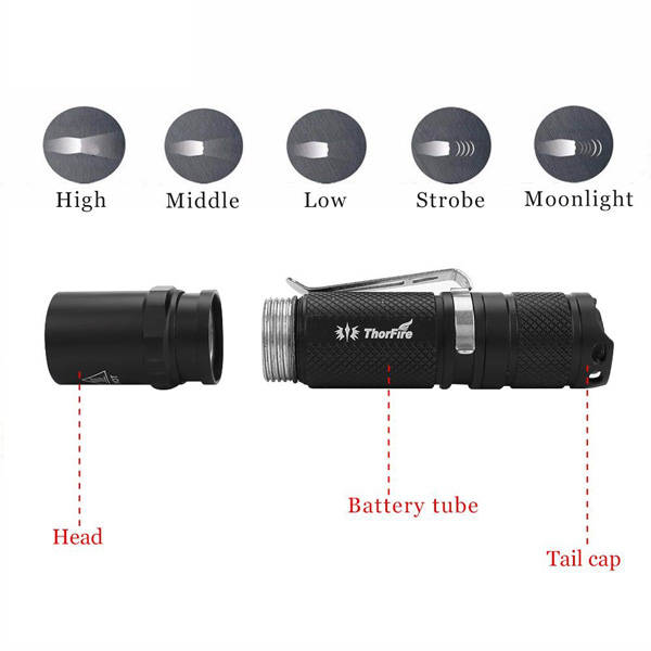 Specification: | Product name: | ThorFire TG06S Upgraded Version 500LM Mini EDC LED Flashlight |