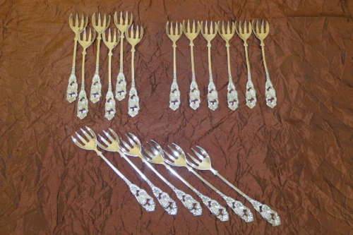 THIS FANTASTIC COLLECTION OF THREE SETS OF VINTAGE (STAMPED) 800 SILVER CAKE FORKS WITH ORNATE DETAILING ARE IN STUNNING CONDITION AND HAVE BEEN VERY WELL LOOKED AFTER ALL THESE YEARS. EACH SET HAS SIX FORKS AND EACH SET OF FORKS WEIGHS ROUGHLY 80g. THE COMBINED WEIGHT OF ALL 18x FORKS IS 240.92g. 800 SILVER (80% SILVER) WAS PREDOMINANTLY USED IN EUROPEAN COUNTRIES SUCH AS GERMANY, ITALY, AUSTRIA ETC AS IT IS A MORE DURABLE SILVER FOR FLATWARE AND TEA & COFFEE SERVICES. HERE IS YOUR CHANCE TO BUY 18 MATCHING SILVER CAKE FORKS (AND/OR MATCHING SILVER TEASPOONS IN THE NEXT LISTING) AT A GREAT PRICE.