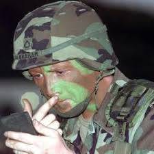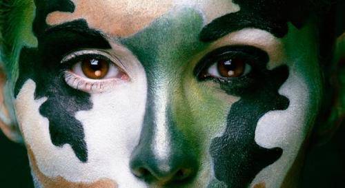 Camouflage your face, neck, and hands in stripes or patterns to suit your environment.