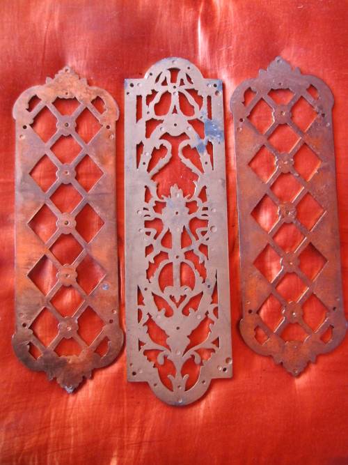 THREE DECORATIVE ORMOLU METAL DOOR PLATES