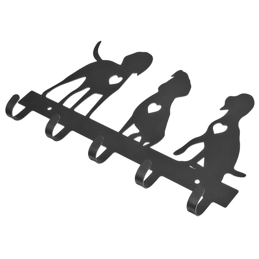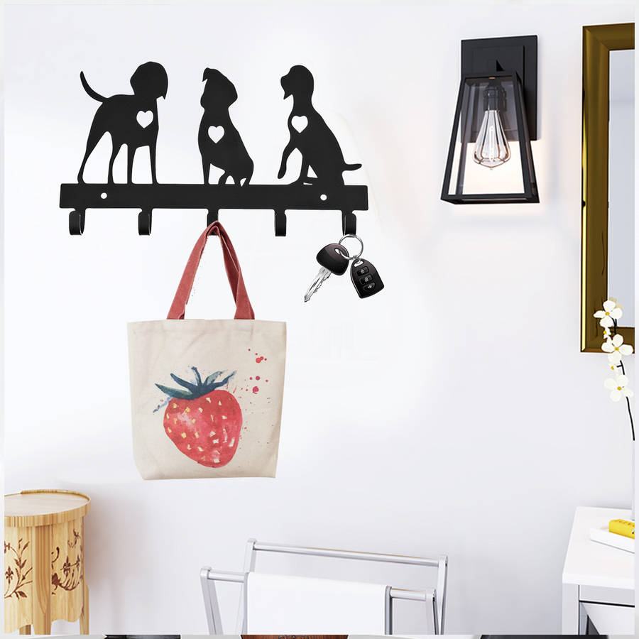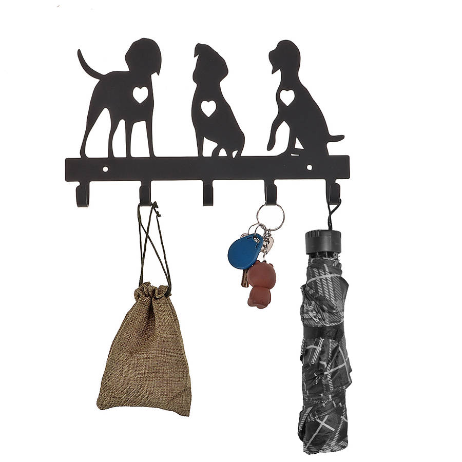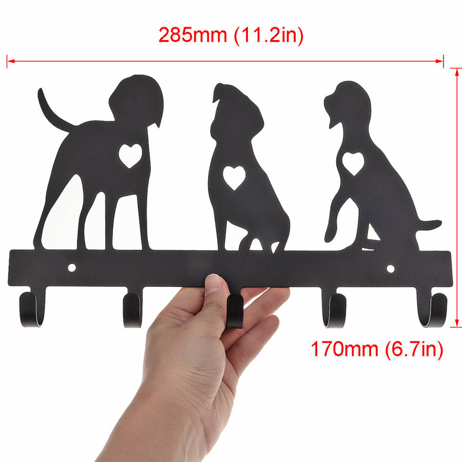Technical Specifications: Name: Three Dogs Key Hooks Pattern: Three Dogs Color: Black Material: Iron Number of hooks: 5 Size: 285*170mm (11.2*6.7in) Features: aFix this on the wall of your entryway and it is sure to grab the attention of guests entering who will be full of smiles and praises. A wall hook with a eye-catching sign is something just perfect for the hallway. a Space saving - strong and slim profile to maximize storage space,Strong and durable - The hanger can support up to 5 kg of weight. aIt is difficult to produce wrinkles and saves ironing time. Use these hooks to hang keys, coats, sling bags or cloth bags pants, jackets, shirts, skirts, etc. So well carved, it is sure to make the walls it is mounted on captivating.p a Sort the clothes neatly - Sorting clothes helps you find the clothes you want to wear .( It features five hooks made of metal. ) aLight in weight, this wall hook is easy to fix. You can also fix it in your living room, bedroom or bath area. It's a fine accent to lake, lodge and outdoorsy decor, and is great as a housewarming gift! So, order this for your home soon. Package Contents: 1x Key Coat Rack with screws