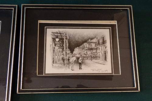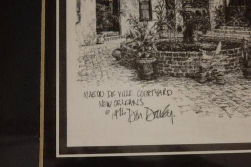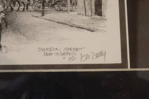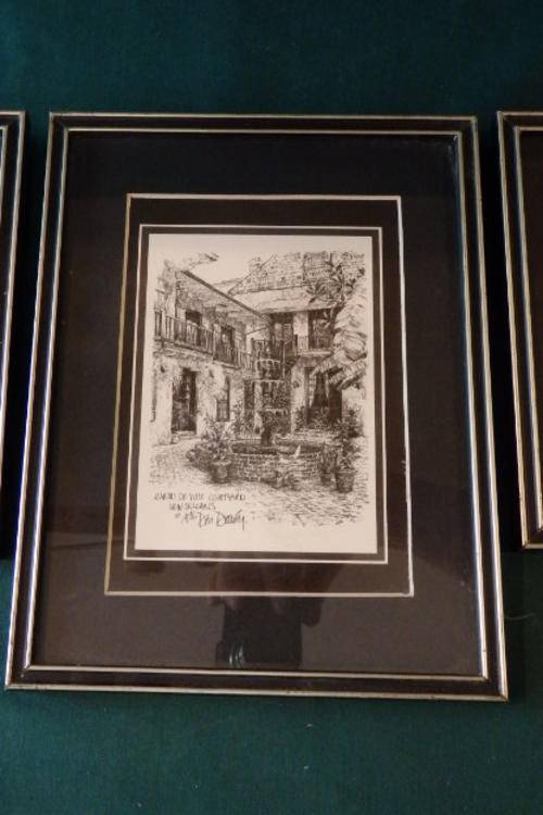 THESE THREE FANTASTIC FRAMED VINTAGE LIMITED EDITION ETCHING PRINTS BY AMERICAN ARTIST DON DAVEY ARE PART OF HIS VERY FAMOUS AND HUGELY COLLECTIBLE NEW ORLEANS ETCHING RANGE. THE PRINTS EACH MEASURE 24cm x 18.6cm AND ARE SIGNED AND DATED. THE FIRST PRINT IS TITLED STEAMER SANCHEZ - 1976, THE SECOND IS BOURBON STREET - 1980 AND THE THIRD IS MAISON DE VILLE COURTYARD - 1976. THE PRINTS ARE FRAMED BEHIND GLASS. PLEASE NOTE THAT YOU ARE BIDDING PER PRINT TO TAKE ALL THREE.
