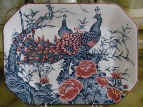 One is Decorated with a Floral (Peonies and Chrysanthemums) and Fans while the Other Two have Magnificent Peacocks and Peonies adorning their surfaces. Each is labelled on the back