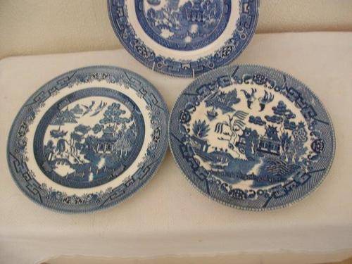 Three lovely blue and white wall plates one is old willow other is churchill last one is a no name brand all items are in good used condition nice find for the collectorplease have a look at my other listings *free sprit*Thank you