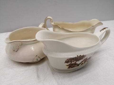 These assorted porcelain gravy boats are in good condition and measure approximately 20cm long and 8cm high. This dinner ware can be used on all occasions on a lunch or dinner table. There is a Johnsons bros, Alfred Meakin and Staffordshire. There are no chips or cracks, slight crazing on the boats.