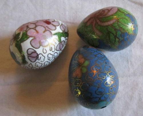 THREE MINIATURE CLOISONNE EGGS ON STANDS - SOOO PRETTY!!