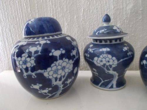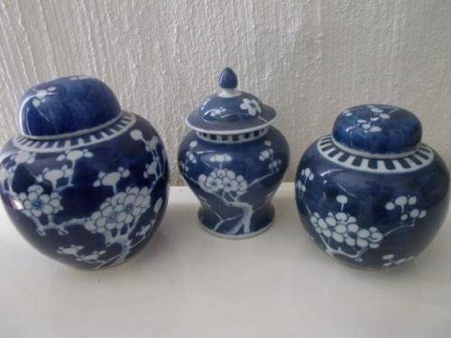 Kindly note door to door only please the cost is R170 to send a lot of three collectable blue and white ginger oriental jars all in good used condition all for one bid please have a look at my other listings *free sprit*Thank you