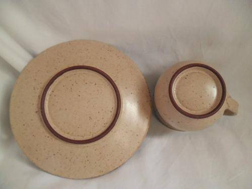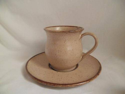 Usual sized coffee/tea cups 8.5 cm high x 7.8 cm in diameter, saucers are 15.8 cm in diameter.