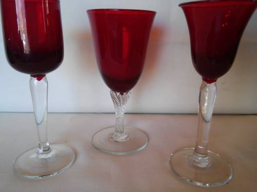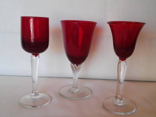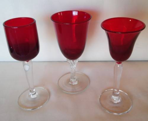 Three Red wine glasses with clear stems