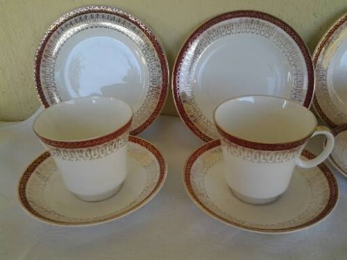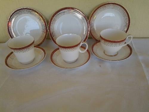 three nice vintage royal grafton red and white with a touch of gold in lay porcelain tea cups trios please note two seem like coffee ones the one on the end is a tea one but one could use them for tea they are in good order