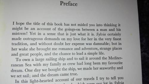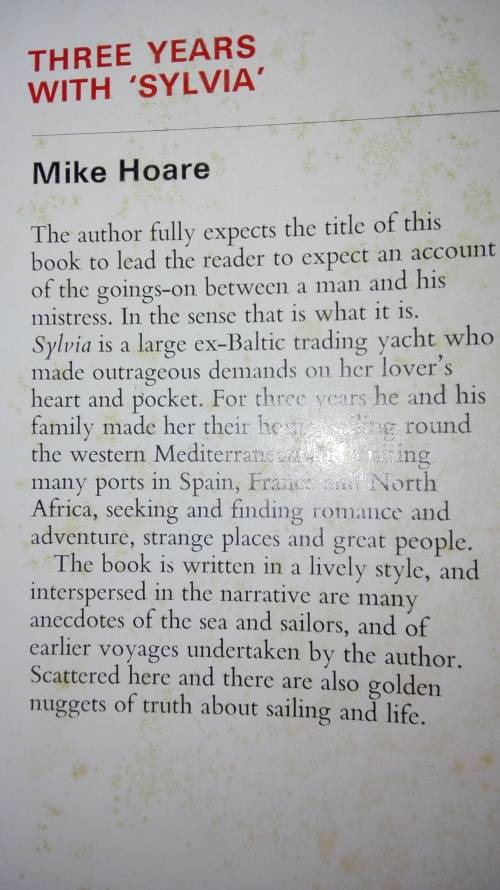 " The author fully expects the title of this book to lead the reader to expect an account of the goings-on between a man and his mistress. In a sense, that is what it is. Sylvia is a large ex-Baltic trading yacht who made outrageous demands on her lover's heart and pocket. For three years Mike Hoare and his family made her their home, sailing round the western Mediterranean in Sylvia and visiting many ports in Spain, France and North Africa, seeking and finding romance and adventure, strange places and great people.