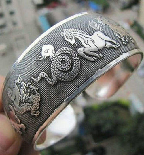 Tibetan silver 12 animals Bracelets carved cuff Bracelet bangle