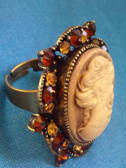 TIBETAN SILVER COPPER TONE CAMEO RING 35 mm X 32 mm