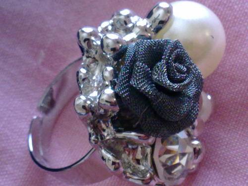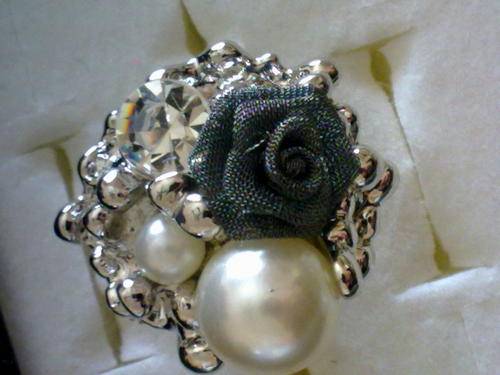 TIBETAN SILVER PEARLY ROSE DIAMANTE RING 26 mm X 26 mm