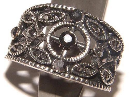 TIBETAN SILVER RING WITH MARCASITE STONES