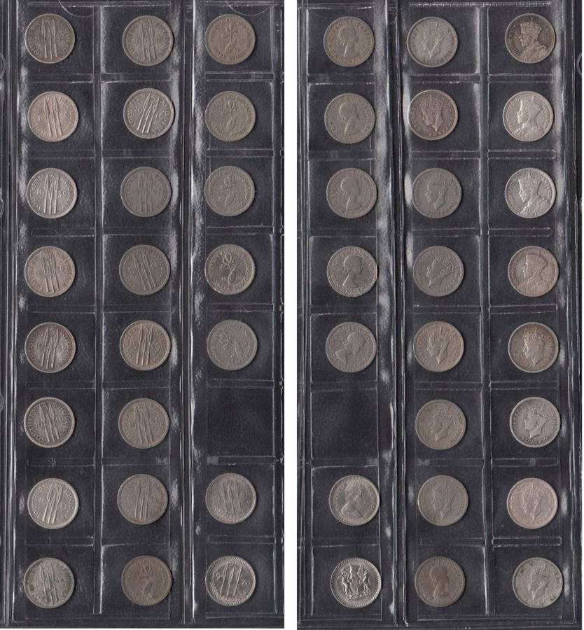 Only 2 dates (1939 & 1942) missing. Otherwise the collection is complete from 1932 to 1970. There are 23 coins in total.