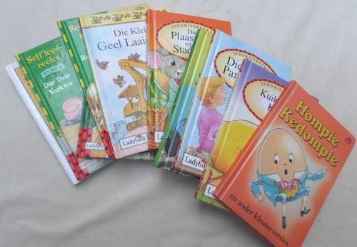 HIERDIE BOEKIES IS AMPER SOOS NUUT - DAAR IS 'N NETJIESE NAAM EN 'N KLEIN VUIL KOLLETJIE VOOR IN 'HOMPIE KEDOMPIE' EN 'N INSKRIPSIE VOOR IN 'DIE GOUE GANS' - VERDER IS HULLE PERFEK - NETJIES EN SKOON MET BAIE MOOI ILLUSTRASIES. AFRIKAANSE 'LADYBIRD' BOEKIES HET BAIE VERSAMELBAAR GEWORD SO LEES HULLE VIR KLEINDING EN DAN BERE HULLE VIR DIE TOEKOMS! VERWYS FOTOS POSGELD SAL R50 WEES.