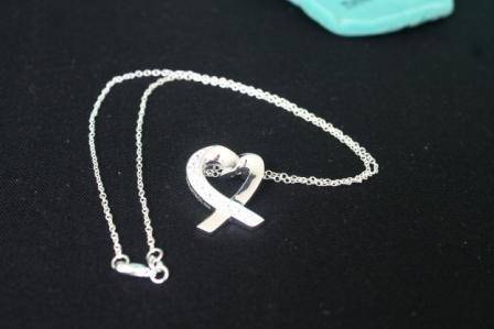 TIFFANY & CO - 'RIBBON HEART PENDANT WITH CZ INLAY" HALLMARKED 925